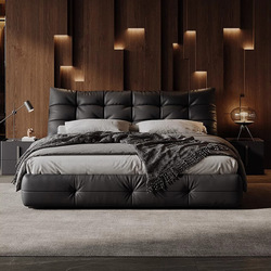 Custom Italian Postmodern Minimalist Double Bed 1.8M Luxury Tufted Genuine Top Grain Leather Bed Compact Nordic Wedding Bed