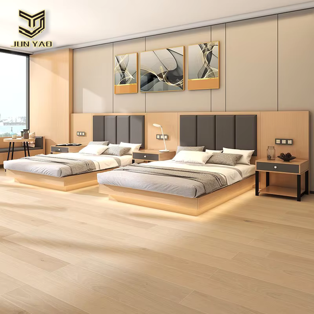 Modern Hotel Bedroom Sets Single & Double Beds in Wood Material for Guest Rooms Express Hotels and Homestay Family Homestays